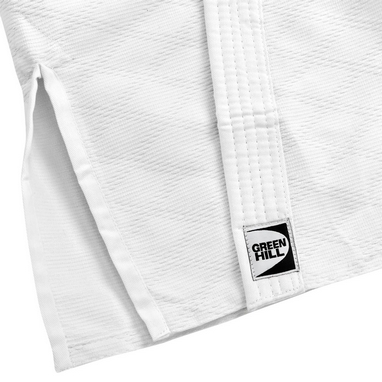 Кімоно дзюдо Green Hill JBS біле - ідеальне дзюдогі для дітей, юнаків та юнок, які починають займатися дзюдо та беруть участь у своїх перших змаганнях на кольоровий пояс. Високоякісна тканина гарантує відмінну довговічність. Куртка посилена подвійними швами на плечах, рукавах та грудях.