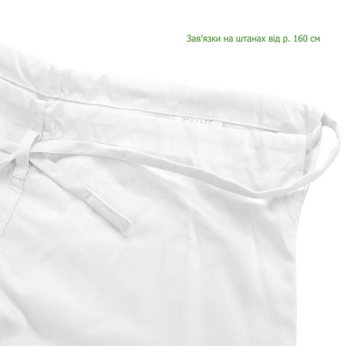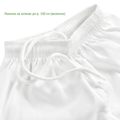 - резиновый пояс (120-150 см) и шнуровка на брюках (160-180 см).