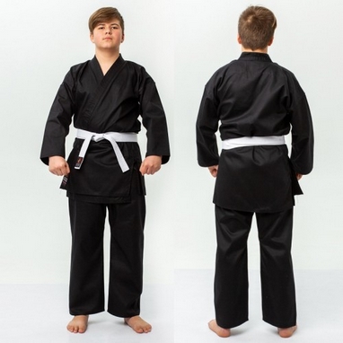 Кімоно для карате Wolf чорне (KW-BK). Виготовлене з натуральної бавовни. Міцні шви, оптимальний крій. В комплект входить куртка, штани та пояс. Штани на гумці та шнурку. Модель підходить як для досвідчених спортсменів, так і для початківців.