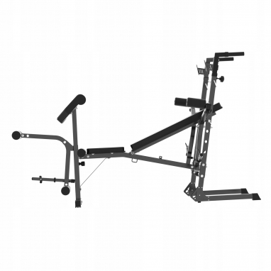 Рама багатофункціональної лави для тренувань від 4FIZJO виконана з високоякісного сталевого профілю, тому максимальне навантаження на неї становить до 300 кг, окремо навантаження на стійки складає до 230 кг. Тренажер оснащений різноманітними системами регулювання, завдяки чому кут нахилу спинки можна змінювати у 4-ох положеннях, висоту стійок в межах 124-133 см та опори для ніг регулюються у 3-ох положеннях. Додатково в розпорядженні користувача парта Скотта та важелі для жиму ногами і батерфляю. Якісна та приємна на дотик оббивка з екошкіри наповнена стійкою до деформації, м'якою піною, що гарантує комфорт використання. Ніжки з антиковзкою структурою забезпечать хорошу стійкість інвентарю. Профільовані стійки для штанги мають надійні основи та обладнані ручками, що перетворюють їх у повноцінні бруси для любителів тренувань із власною вагою. Ще однією перевагою даної багатофункціональної лави є можливість складання. Закінчивши тренування ви можете перевести її у вертикальне положення та розмістити, наприклад, під стіною, де вона не займе багато місця.