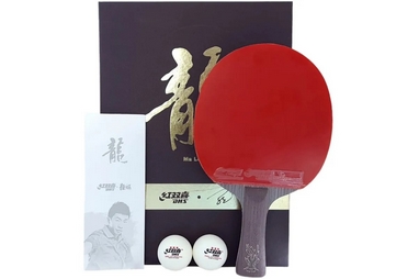 Набір DHS Ma Long складається з ракетки, фірмового чохла DHS і двох м'ячів. Ракетка підійде гравцям атакуючого стилю гри, а завдяки гарній упаковці стане відмінним подарунком для любителів настільного тенісу. Також цей набір має унікальний паспорт, де вказані серія та номер, із зображенням гравця, якому присвячена модель.