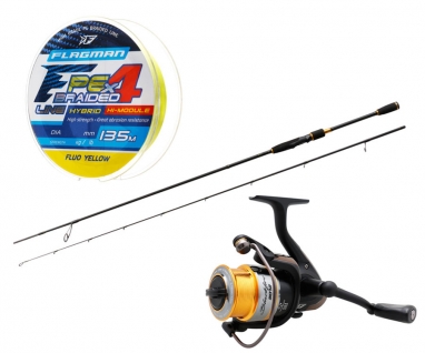 Комплект спиннинговых снастей, в основу которого входит удилище и катушка из серии Blackfire. Удилища этой серии спроектированы как доступные по цене и многоцелевые. А в сочетании с катушками Flagman Blackfire эти удилища — настоящие «рабочие лошадки». Более того, входящий в набор гибридный шнур Flagman PE Hybrid F4 четырехжильного плетения обладает не только исключительной прочностью, минимальной памятью и практически нулевой растяжимостью, но и хорошо заметен при плохом освещении благодаря флуоресцентно-желтому цвету.