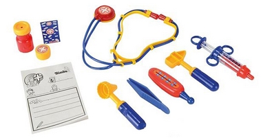 Набор врача игровой Simba Toys, 10 аксессуаров 554 2578 - игрушечный набор, который порадеет ребенка и пробудит желание стать врачом-спасателем. В наборе есть 10 базовых предметов для оказания первой медицинской помощи, в том числе и стетоскоп, градусник, пилюли, медицинская шапочка, молоточек. Набор выполнен из безопасных материалов, которые не навредят здоровью ребенка, а только больше окунут его в атмосферу игры.