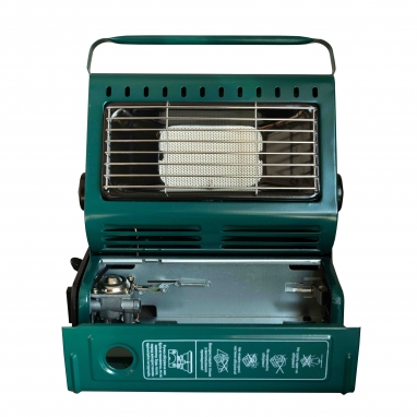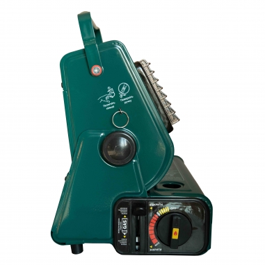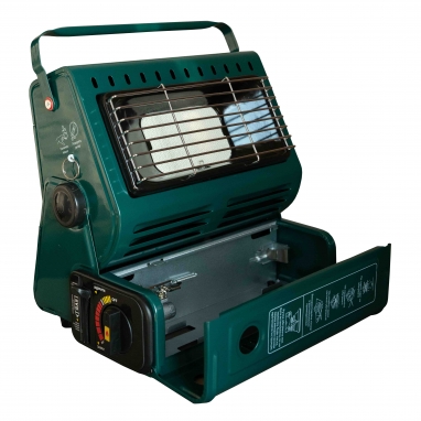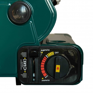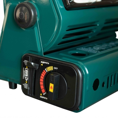 Обігрівач забезпечений клапаном контролю тиску газу і пристроєм налаштування захисту картриджа, а також зручною ручкою у верхній частині корпусу для перенесення.