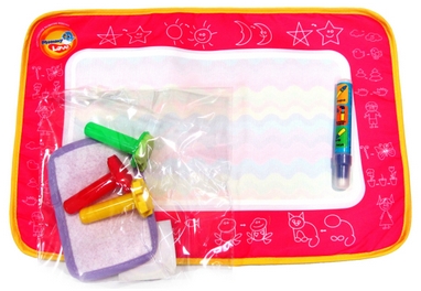 Набор для творчества Mommy Love Рисуем водой розовый - игрушка, с помощью которой ребенок может научиться писать и рисовать. Модель выполнена из безопасных материалов. В наборе идет фломастер, который рисует розовым цветом, и дощечка. Перед рисованием во фломастер нужно залить воду, а затем рисовать на поверхности дощечки. Рисунок не сохраняется, исчезает через пять минут.