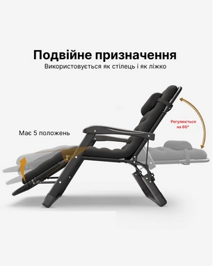 - Зручність у використанні: Простий механізм складання дозволяє швидко розкладати і складати крісло.
