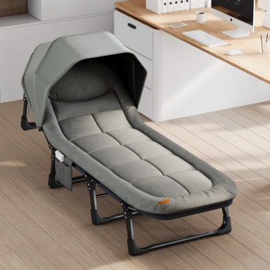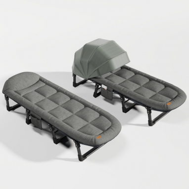 Розкладне ліжко-шезлонг (розкладачка) WCG з матрацом і сонцезахисним навісом (FB-S25)