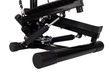 Степпер Hop-Sport HS-25S - отличный кардиотренажер для сжигания калорий и жира, имитирующий подъем по ступеням. Особая конструкция тренажера позволяет постоянно смещать центр тяжести при выполнении движений, тем самым распределяя нагрузку на различные мышцы. Данная модель имеет гидравлическую ручную систему нагрузки с эспандерами для рук и неподвижной стойкой с мягкими ручками. Выполнять движения можно как с эспандерами, так и с жесткой фиксацией плечевого пояса. Небольшой LСD дисплей отображает количество шагов и время тренировки, спаленные калории. Конструкция тренажера достаточно устойчивая. Против соскальзывания стоп, на педалях имеются специальные накладки с антискользящей поверхностью.