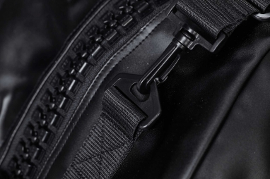 Замкніть карабіни на місце з нижнього боку із зовнішнього боку. Повторіть це з другим ременем, після чого сумка набуде функції рюкзака.