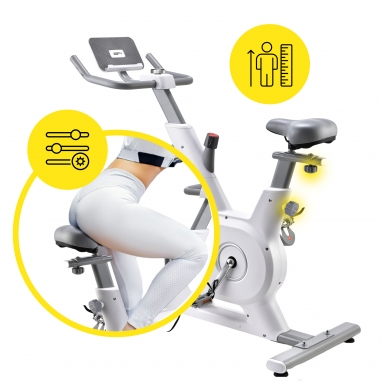 Пориньте у світ професійних велогонок разом зі спінбайком Eliza від польського бренду Cornix виконаному у революційному стилі! Ця преміальна модель оснащена моторизованою магнітною системою опору з електронним управлінням, що забезпечує безпрецендентну точність контролю навантаження під час інтенсивних тренувань. Створена для тренерів, атлетів та амбітних аматорів, вона ідеально імітує динаміку шосейного велосипеда, спалюючи максимум калорій, розвиваючи витривалість серця та формуючи потужні м'язи ніг і сідниць. Відчуйте драйв справжніх перегонів у домашніх умовах: адаптивні програми, реалістичний опір та синхронізація з топовими платформами перетворять кожне тренування на гонку за власними рекордами!