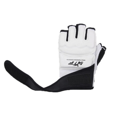 Рукавички без пальців для тхеквондо ВТФ виготовлені з міцного високоякісного шкірозамінника. Тильна сторона долоні має вставки зі спіненого ПВХ, що забезпечує захист під час ударів. М'яка вставка із махрової тканини на великому пальці призначена для зручності витирання поту з обличчя. Завдяки окремому дизайну пальців зручно здійснювати захоплення. На рукавичках є липучка, що дозволяє регулювати розмір. Виріз на долоні дозволяє повітря циркулювати.